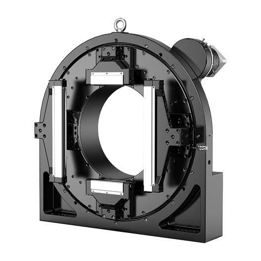 DRK-740圆孔重载激光卡盘内部齿轮齿条传动,传动件热处理合理,确保长期使用无磨损,保障精度稳定性;其整体布局“短悬臂结构”,即卡爪的夹持点与轴承座的支撑点距离较近,使卡盘重心靠近轴承座,增强了强构稳定性高;轴承座采用铸件,轴承、轴承座包围的设计,不仅缩短切割悬臂,减少轴承的额外倾覆力矩,还有效延长轴承寿命,保证切割精度;